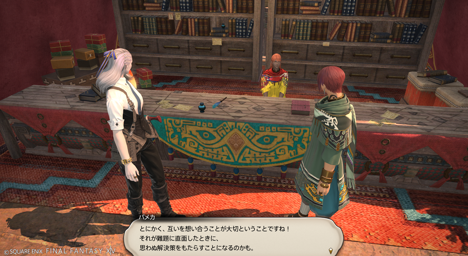 【FF14】クラスクエスト パメカの筆記工房(木工師/革細工師/裁縫師)「不思議なお話を」(ネタバレ注意) 0032024年10月4日FF14,FF14(黄金のレガシー)7.0-,FF14・文房具FF14・文房具 私の事も君って呼んでくれるの嬉しい。なんかいい感じ。ういういの歴史。favorite0 いいね送信中です× 2024年10月4日FF14,FF14(黄金のレガシー)7.0-,FF14・文房具FF14・文房具Posted by れねおん