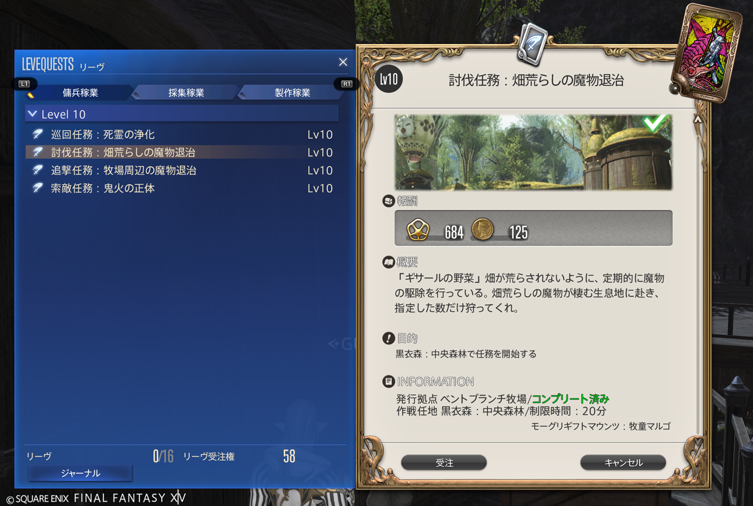 【FF14】リーヴまとめ 黒衣森:中央森林