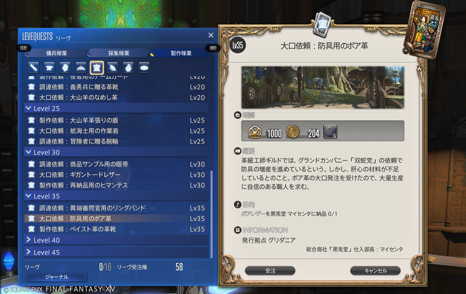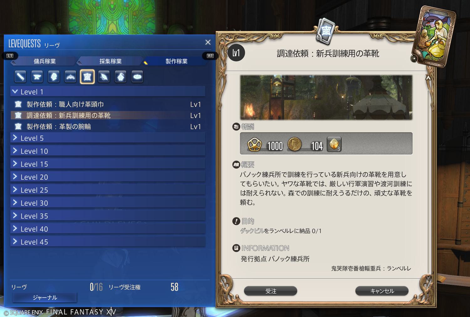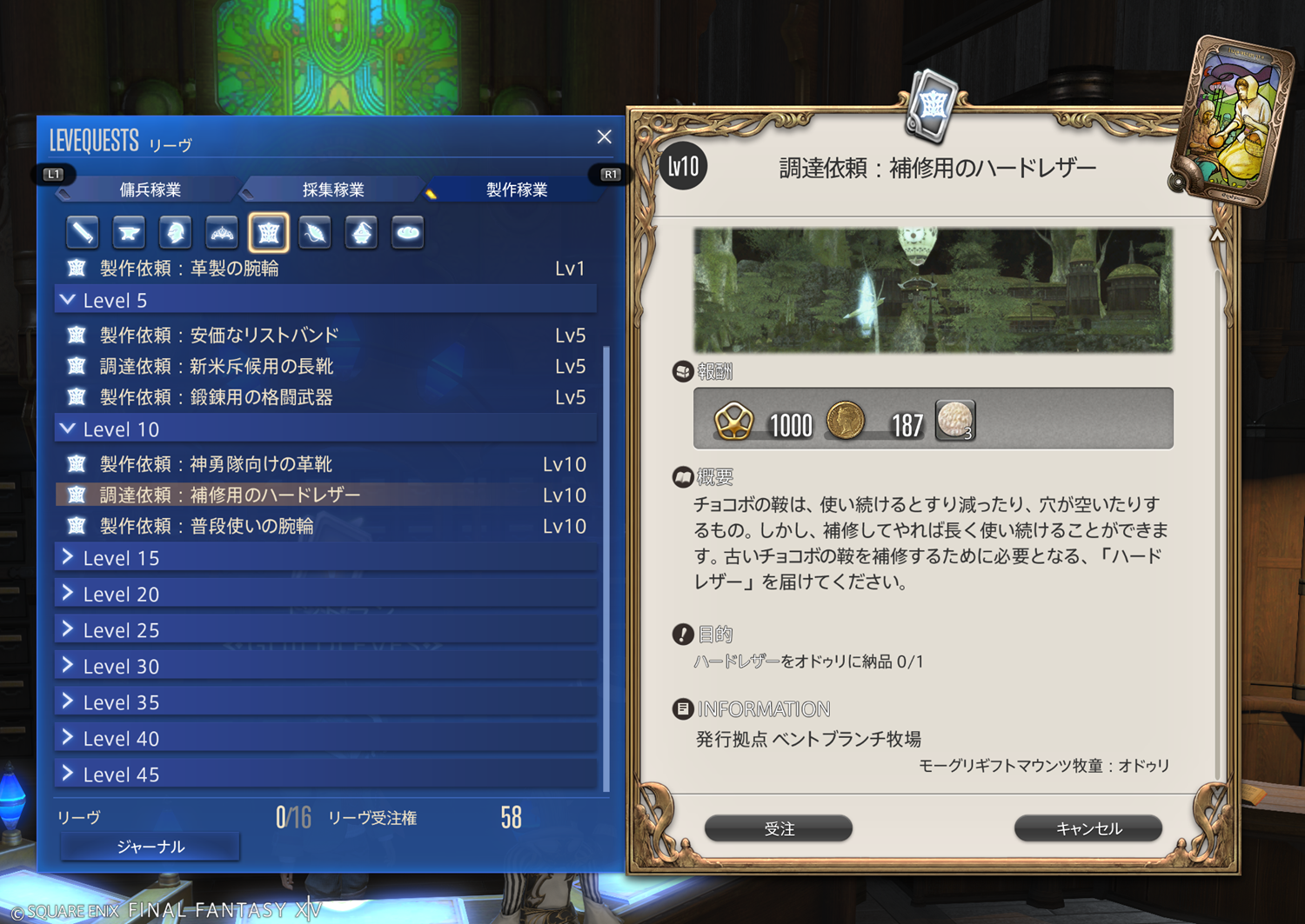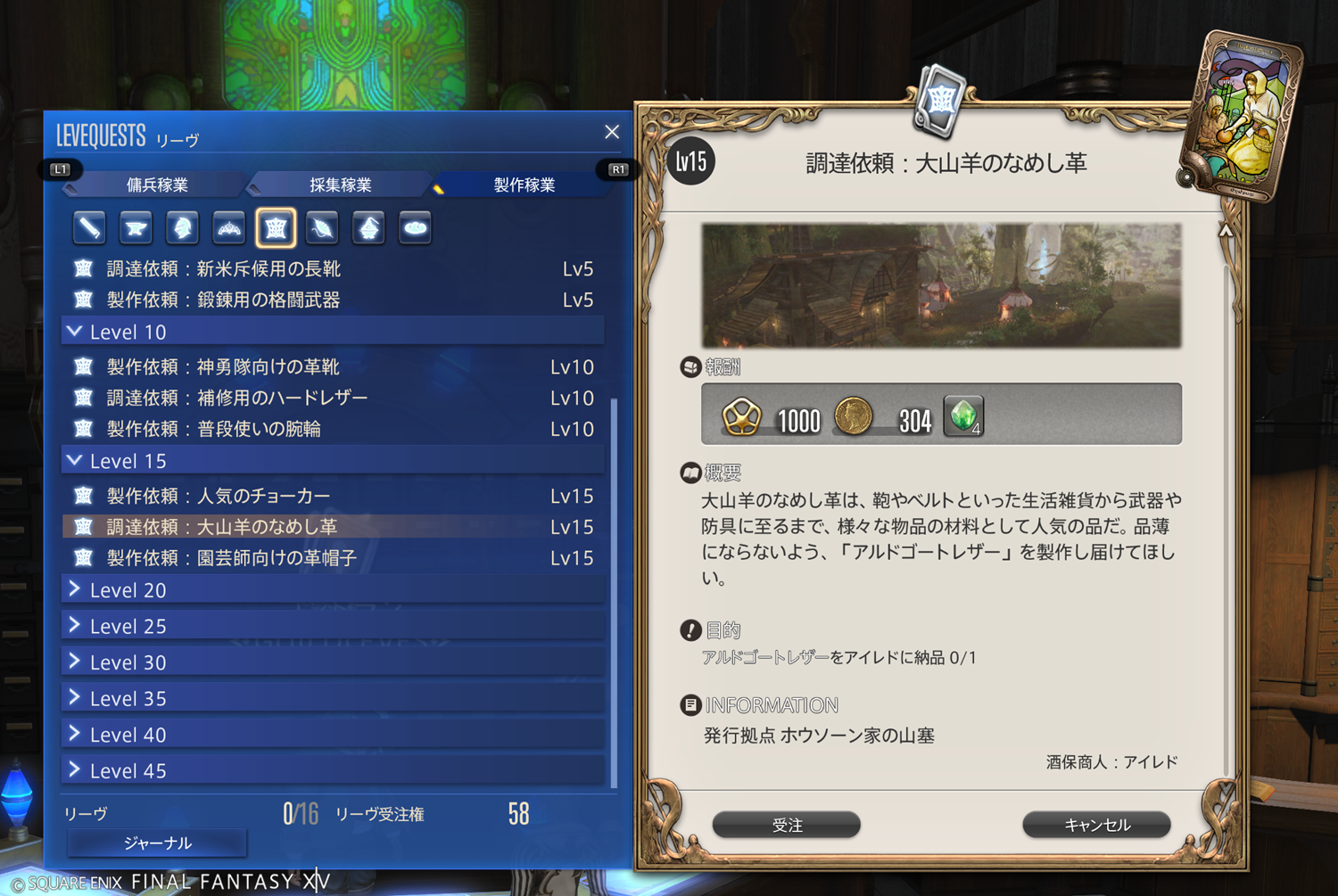 【FF14】リーヴまとめ 製作稼業:グリダニア(革細工師)