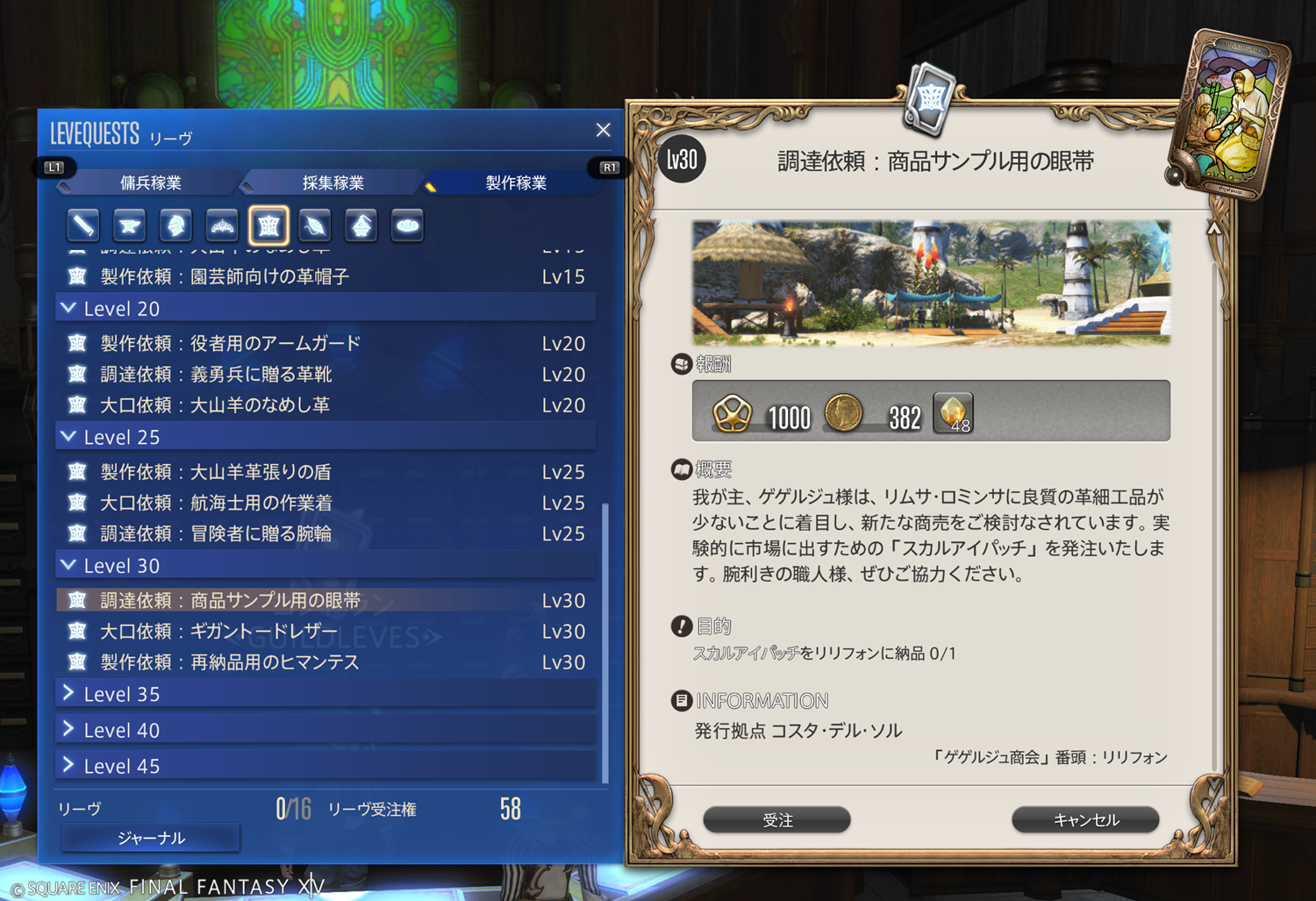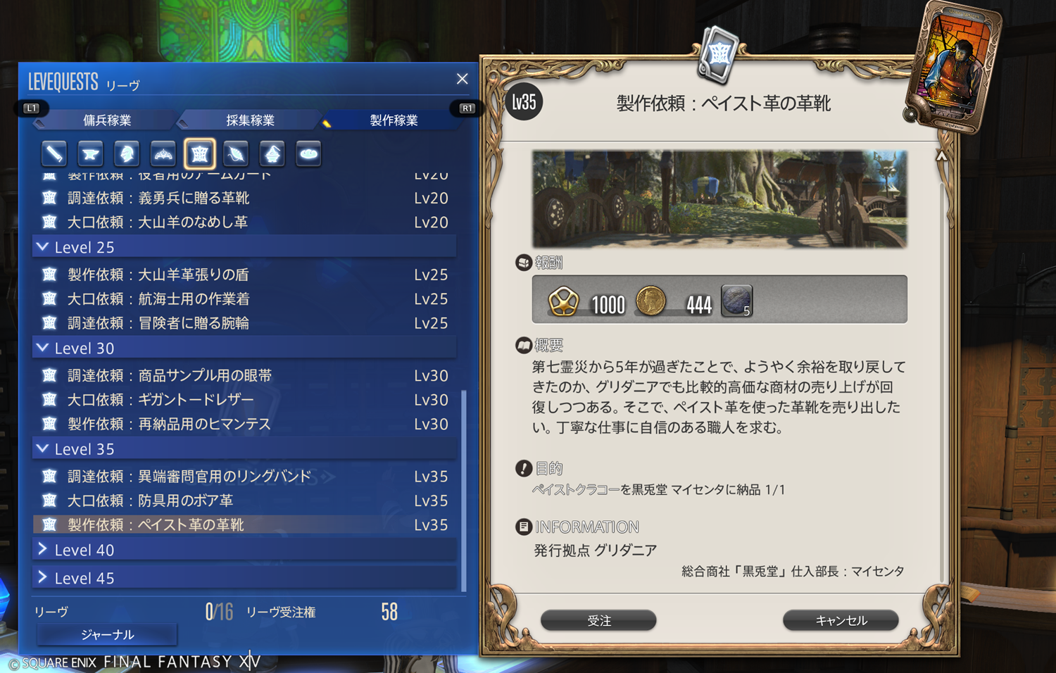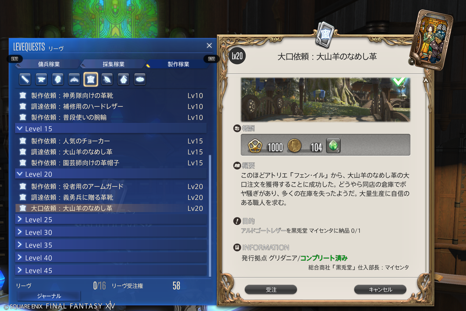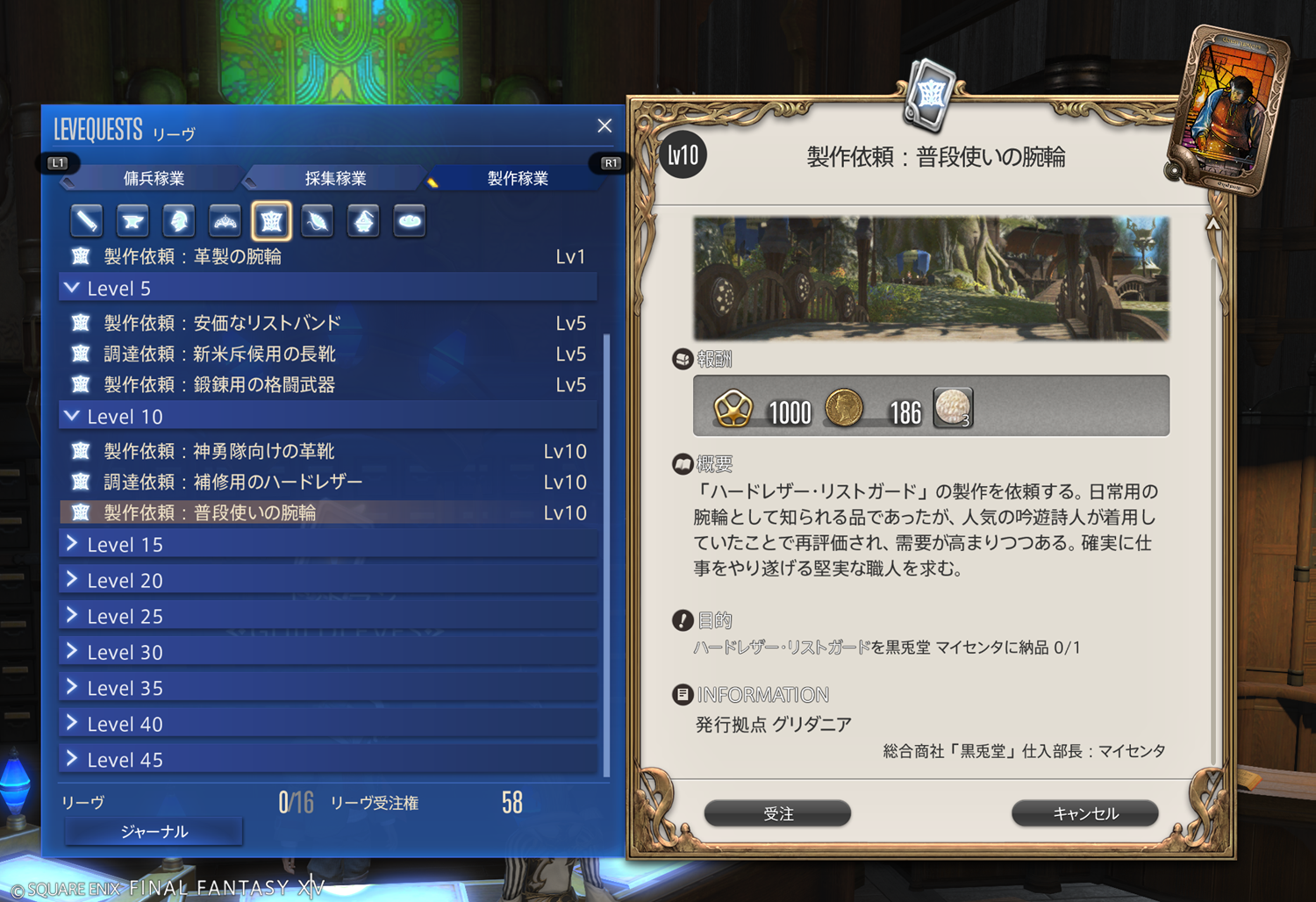 【FF14】リーヴまとめ 製作稼業:グリダニア(革細工師)