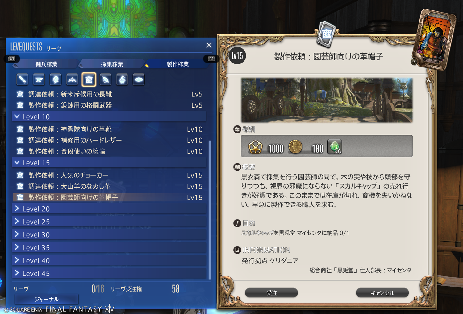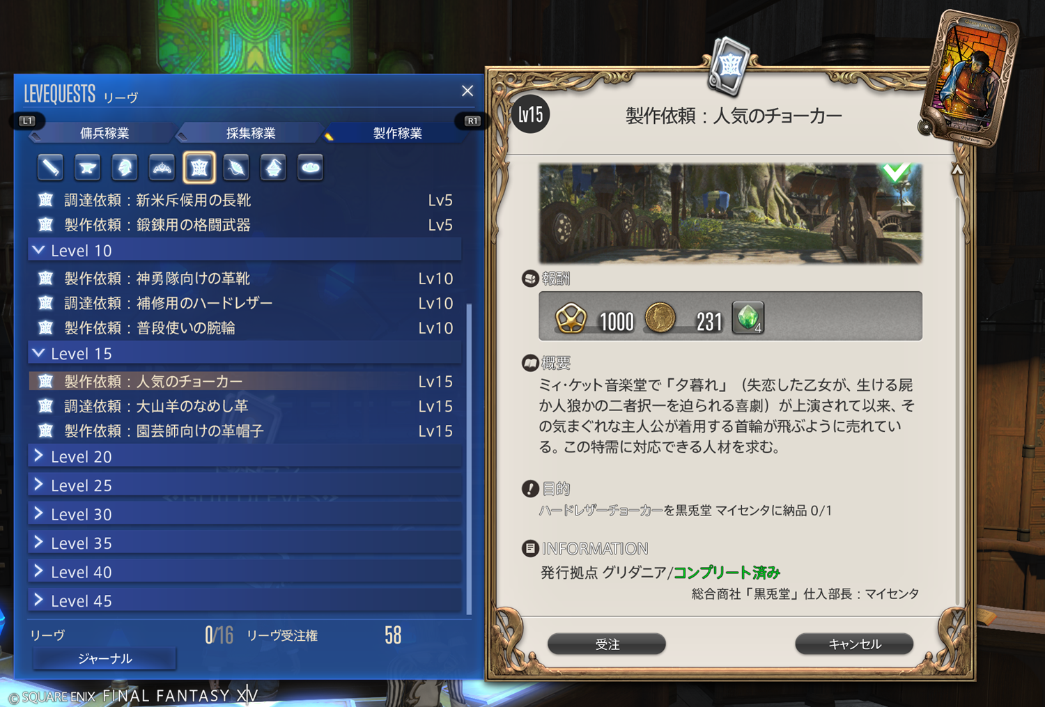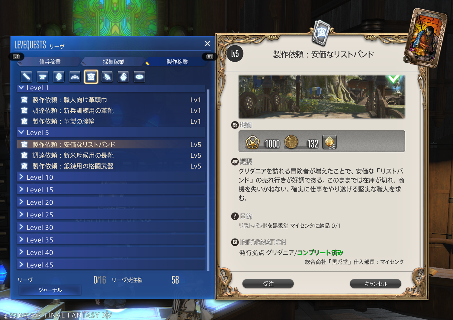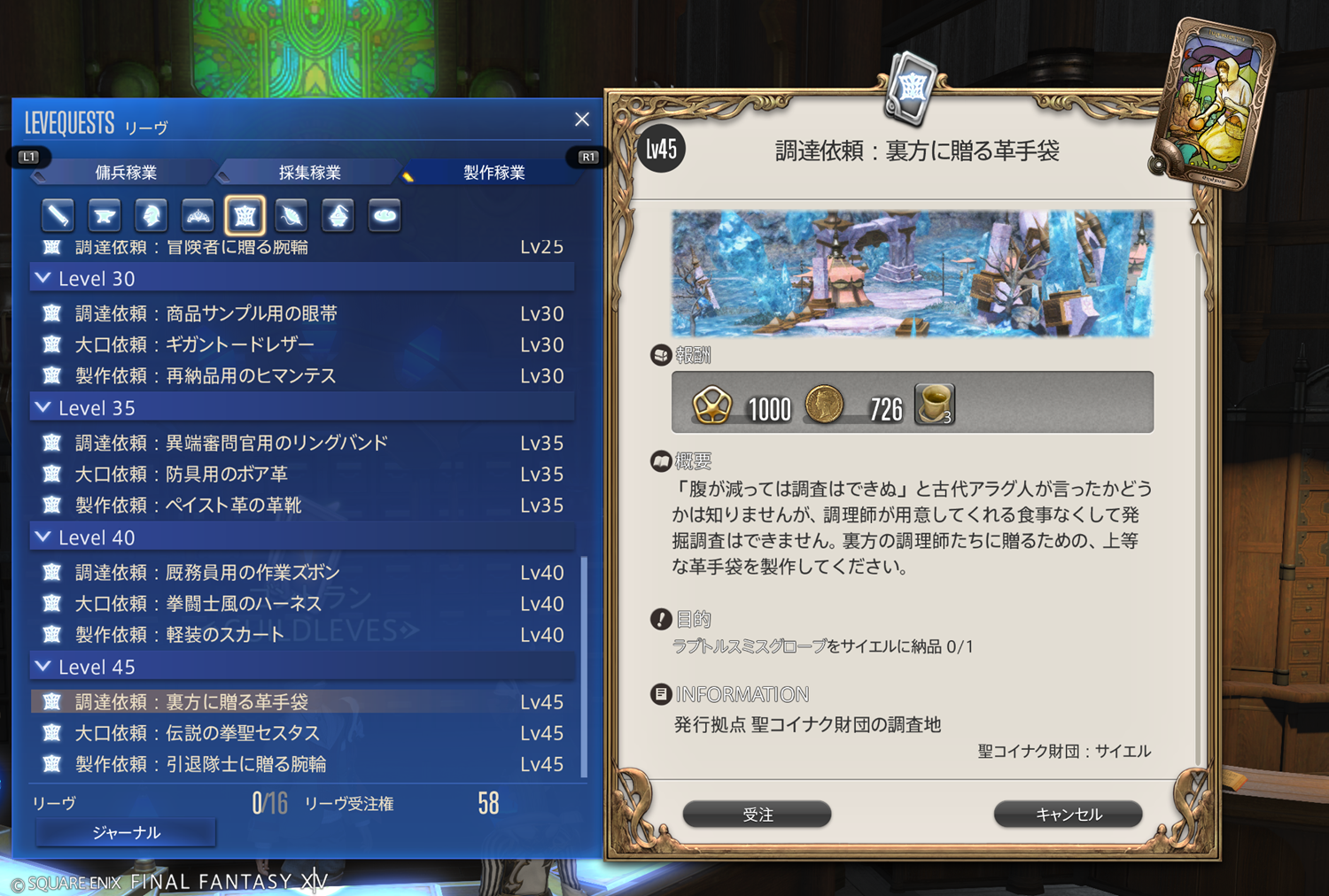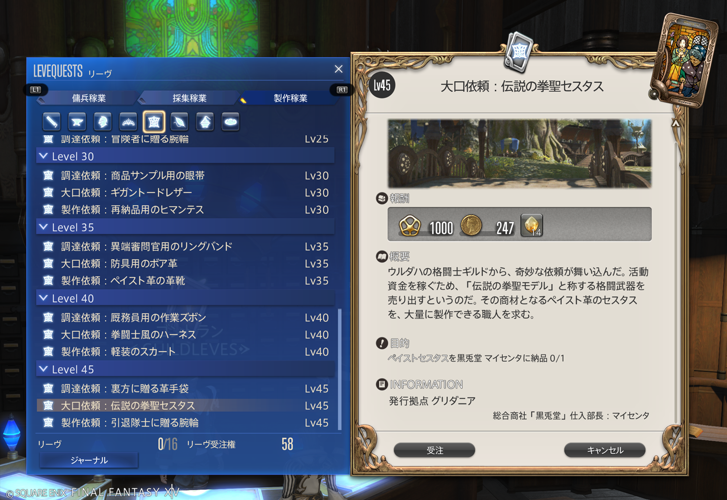 【FF14】リーヴまとめ 製作稼業:グリダニア(革細工師)
