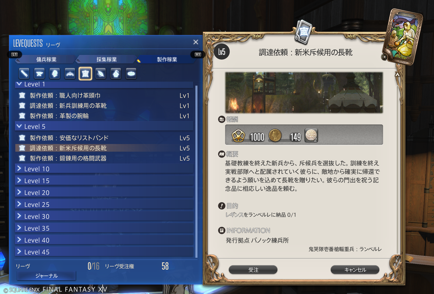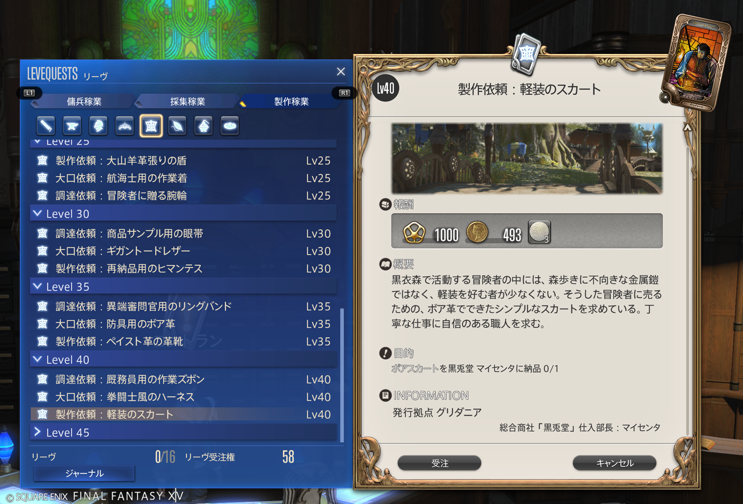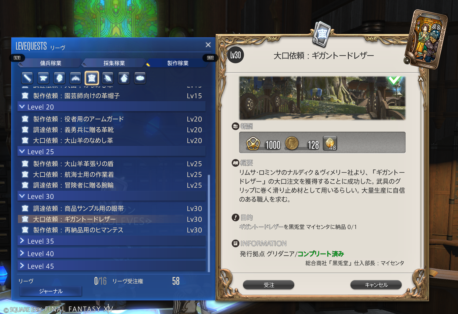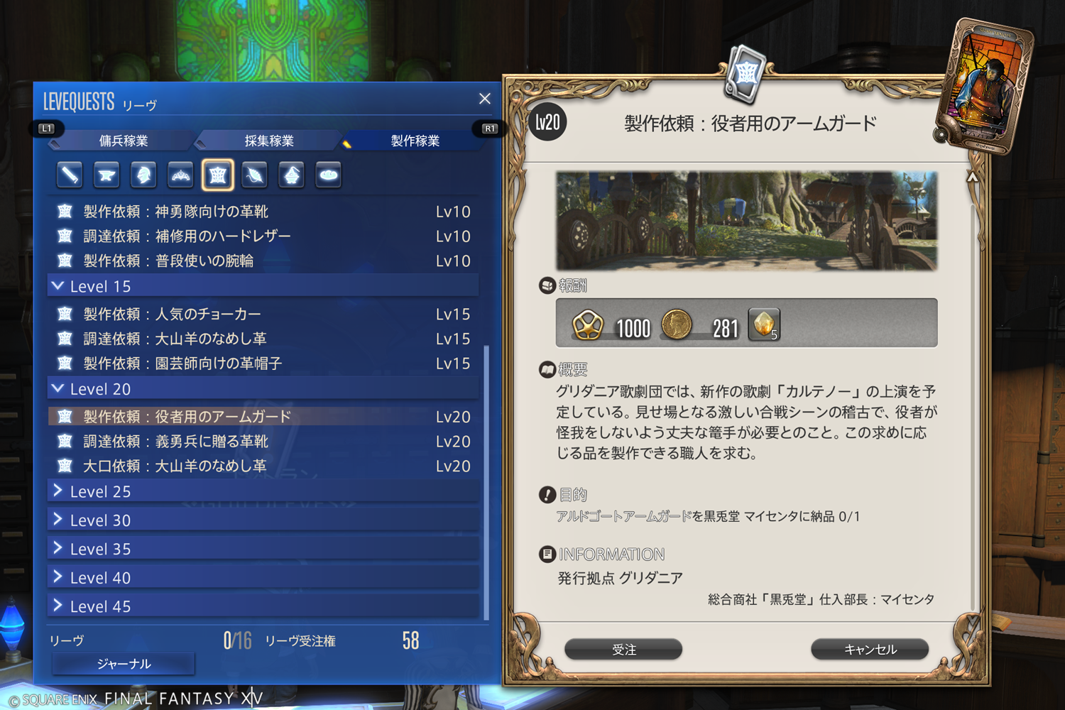【FF14】リーヴまとめ 製作稼業:グリダニア(革細工師)