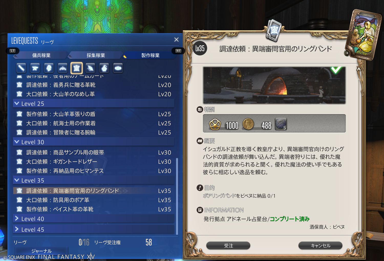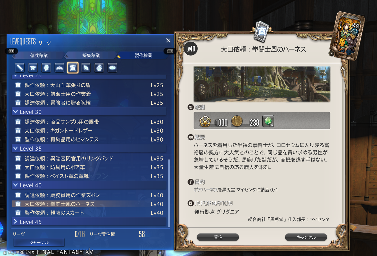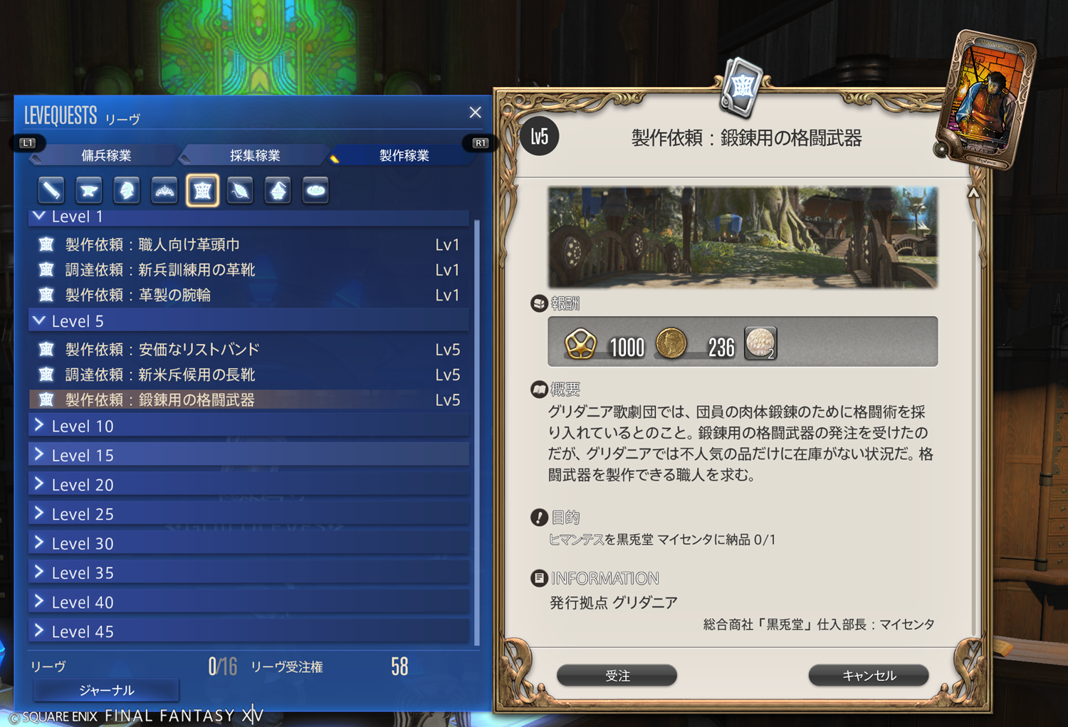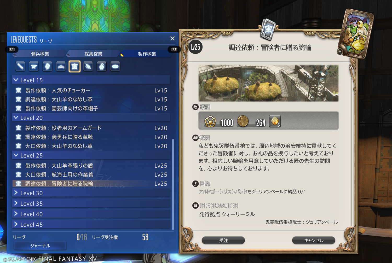 【FF14】リーヴまとめ 製作稼業:グリダニア(革細工師)